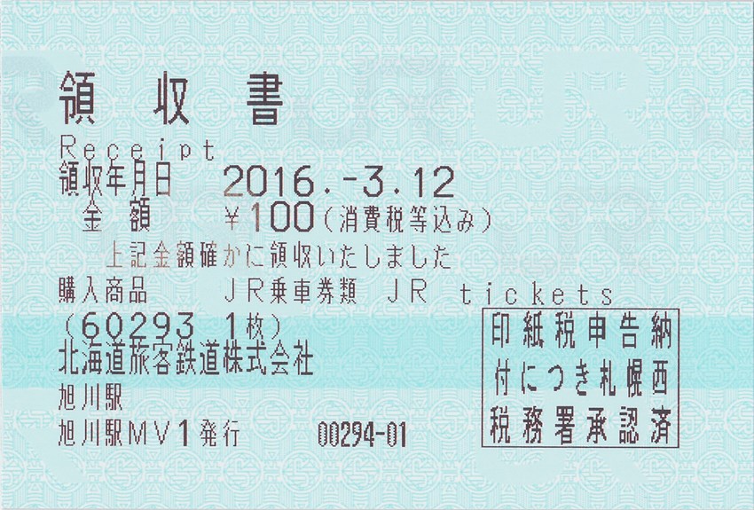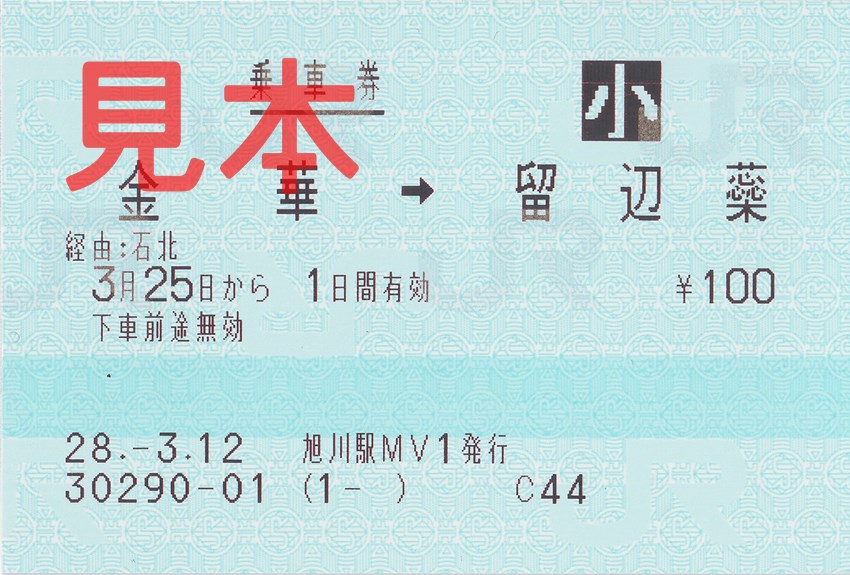 金華→留辺蘂・片道乗車券(旭川駅指定席券売機発行・小児券)