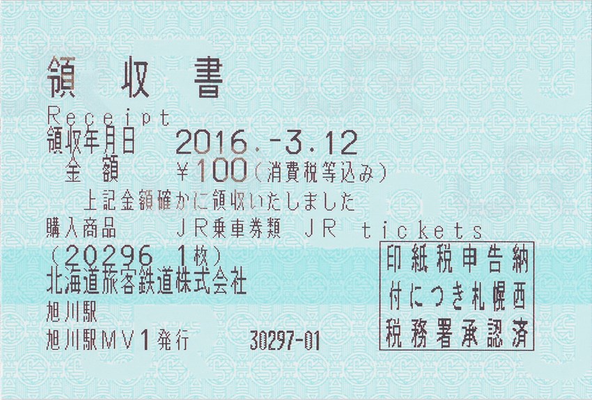 上白滝→白滝・片道乗車券(旭川駅指定席券売機発行・小児券)