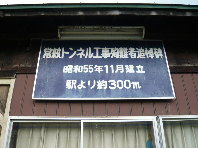 駅舎のホーム側に掲げられた、常紋トンネル工事殉難者追悼碑の案内(