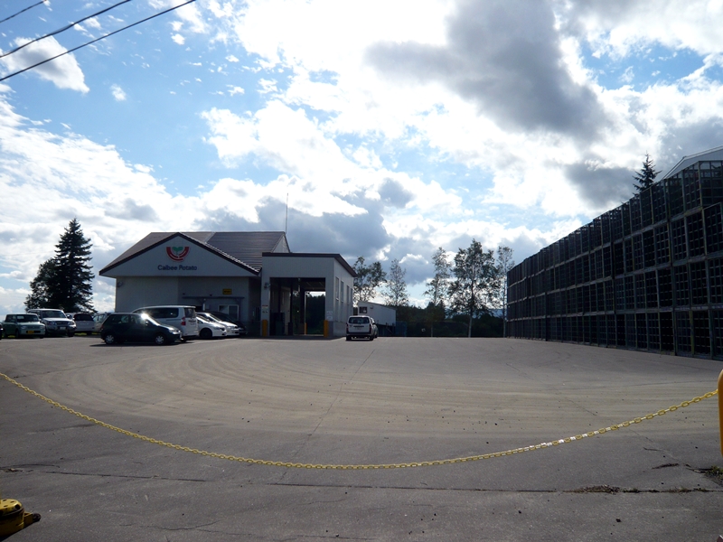 沿道のカルビーポテトの工場。ジャガイモの一大産地らしさがある。