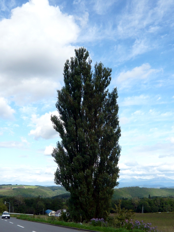 北西の丘展望公園から数百m走ると、ケンとメリーの木。