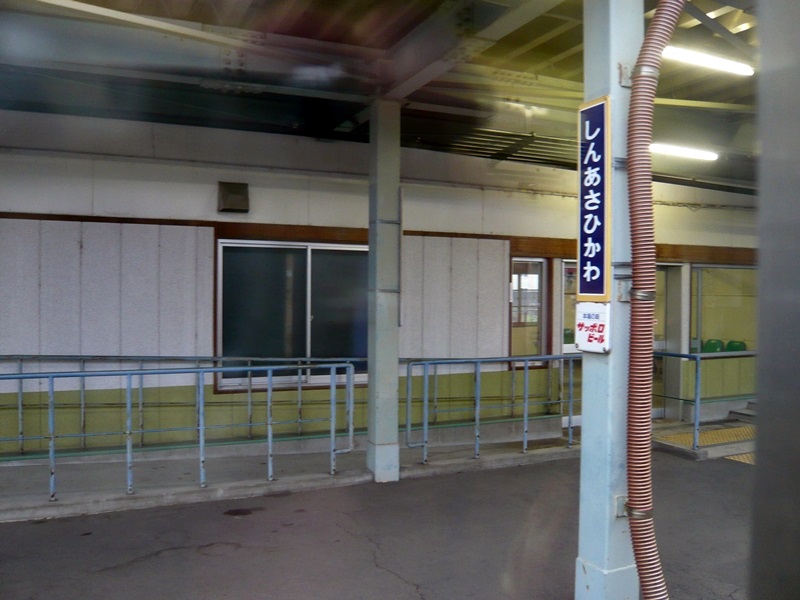 牛朱別川を渡ったら新旭川駅。石北本線との乗換駅だが、ここを通る特急は全列車通過し、かつ全ての普通列車が旭川駅まで直通するため、わざわざこの駅で乗り換える人は少ない。