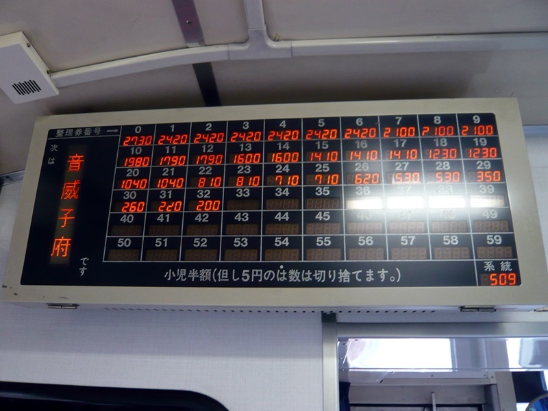 行き先・乗り場案内も木工芸品と洒落ている。