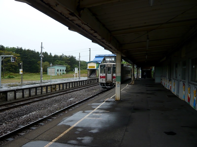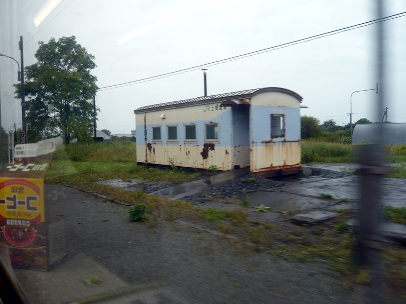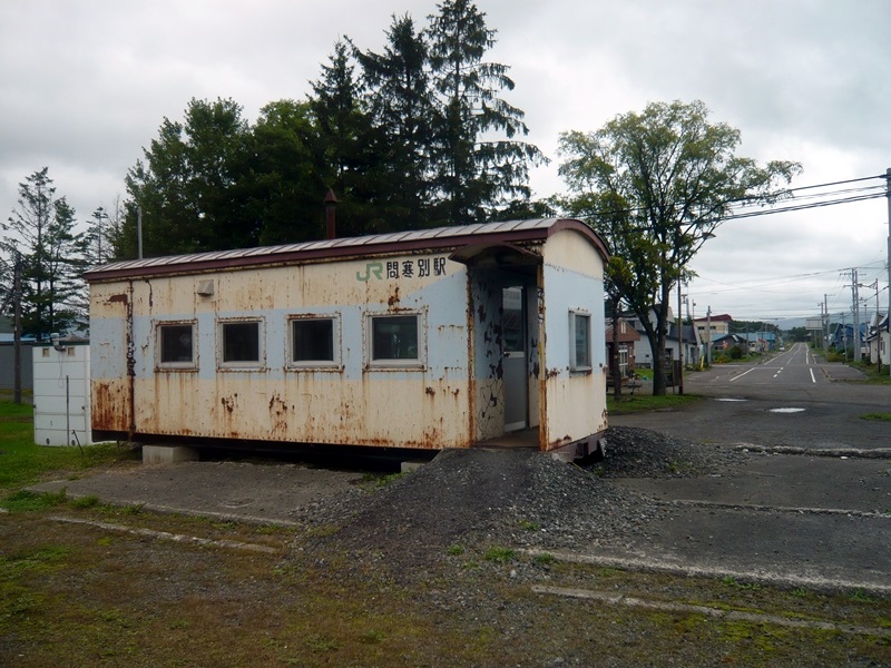 問寒別駅に停車。歌内駅のような基礎上の車掌車駅舎だが、背後の街並みを見る限りではそれなりの集落のようだ。