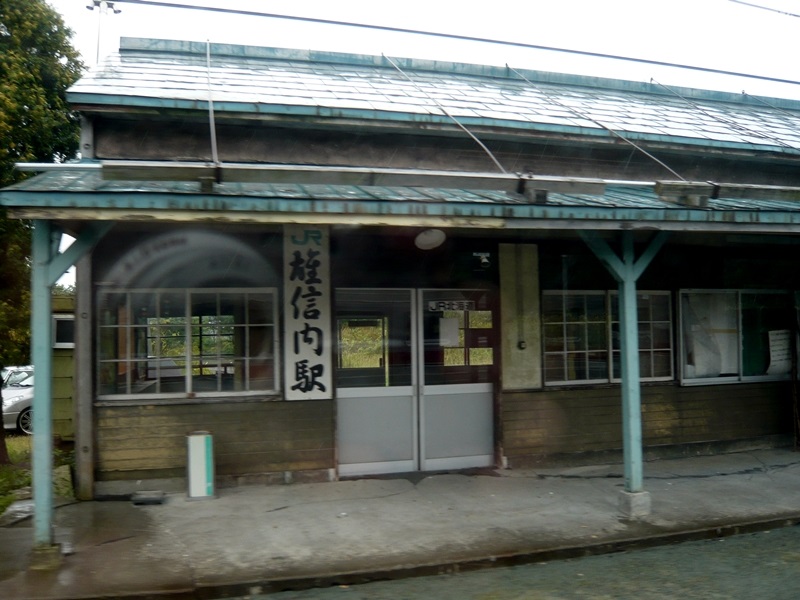 雄信内駅停車。コンデジのレンズ周りが写り込んでいるがご容赦いただきたい。