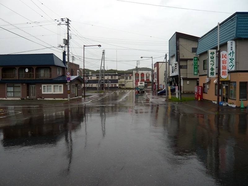 右の民宿の看板に「サロベツ」の文字が踊る。幌延町から豊富町にかけて広がるサロベツ原野の玄関口として、この駅は利用されてきたのだろうか。