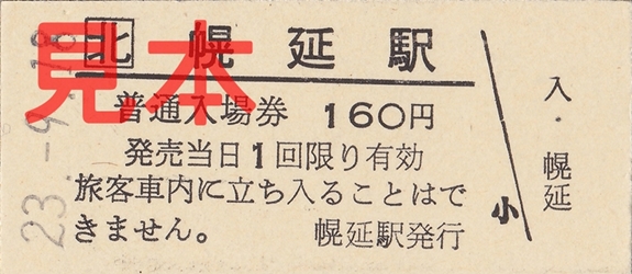 B型券はJR北海道の一般的な様式の硬券入場券。