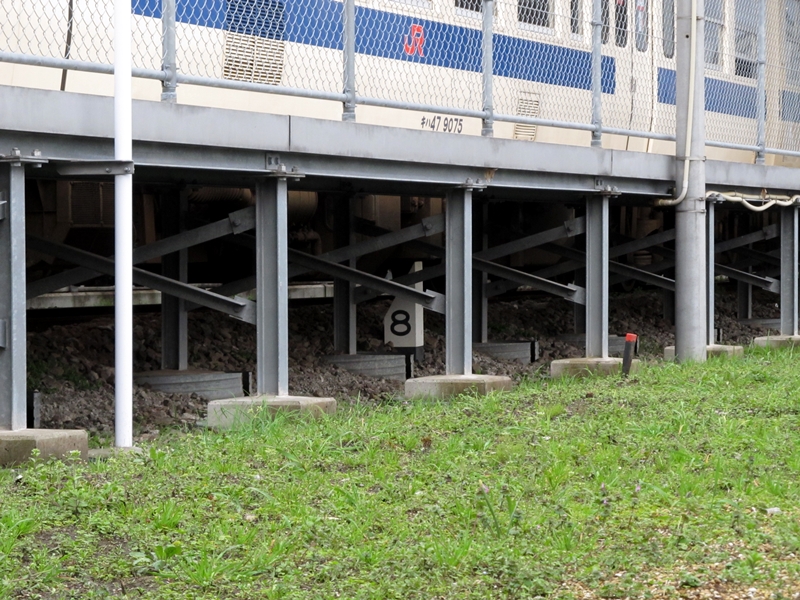 駅ホーム下に隠れた距離標。