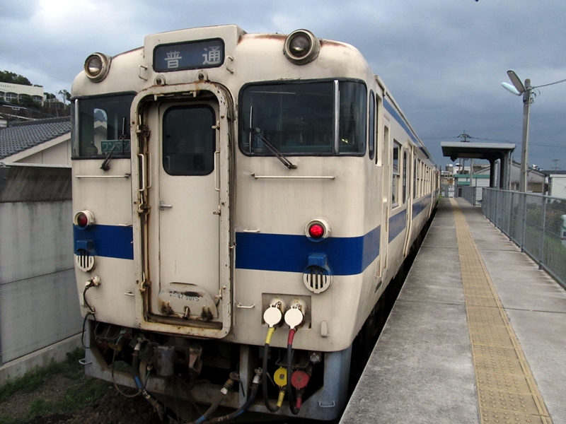 15:58、鹿児島中央行普通列車1352D(キハ47 8057)に乗車し、出発。