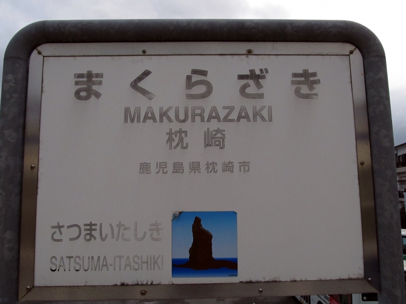枕崎駅の駅名票。