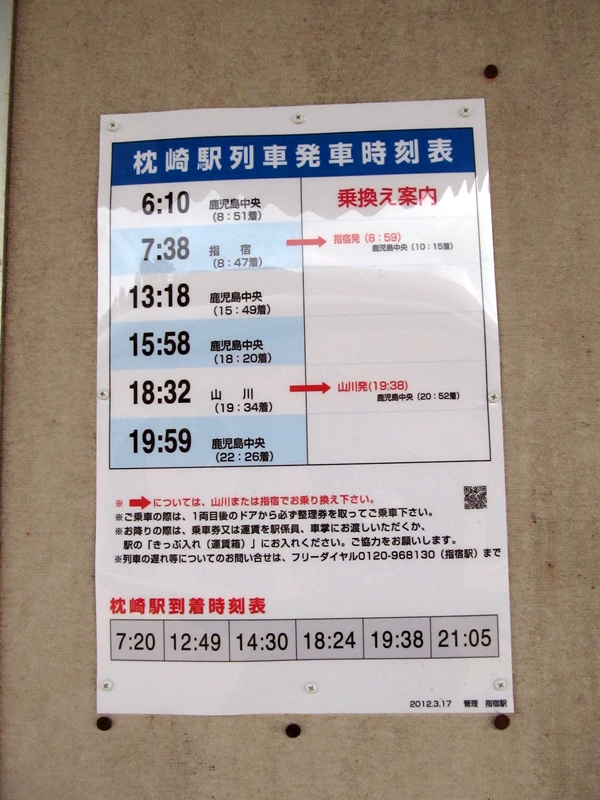 枕崎駅の時刻表。