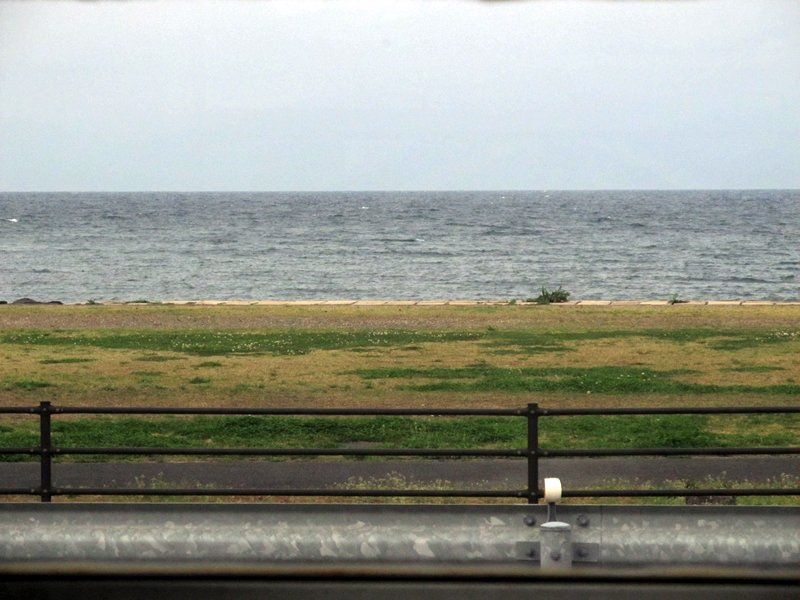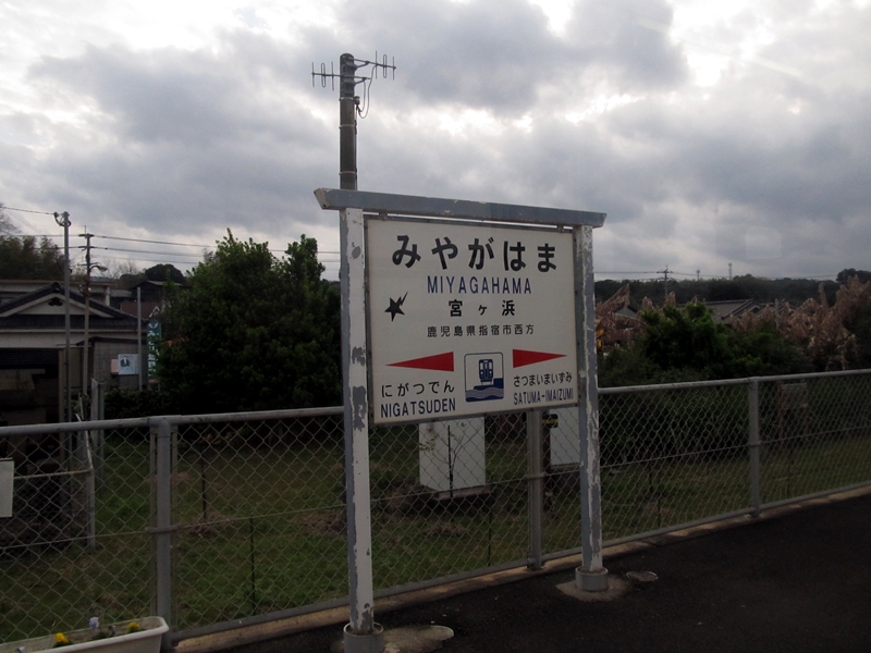 途中停車中の列車内から見た宮ヶ浜駅の駅名票。
