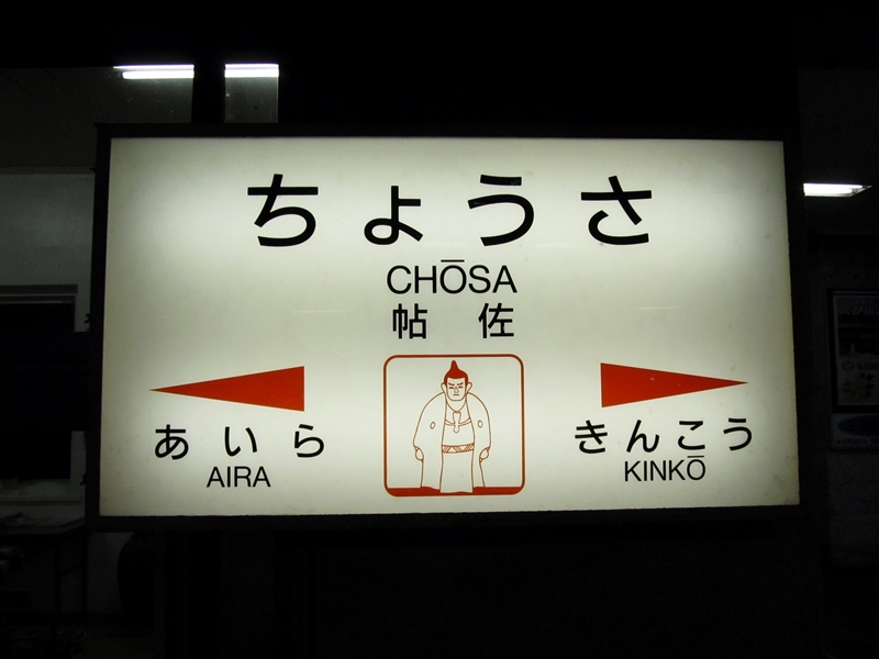 帖佐駅の駅名票。