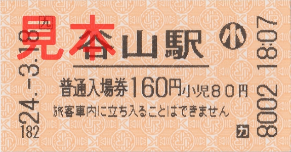 購入した谷山駅入場券(券売機小児券)。