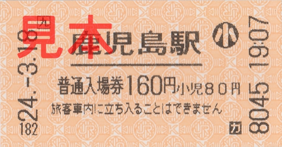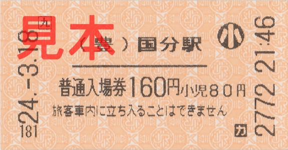 国分駅入場券(券売機小児券)。