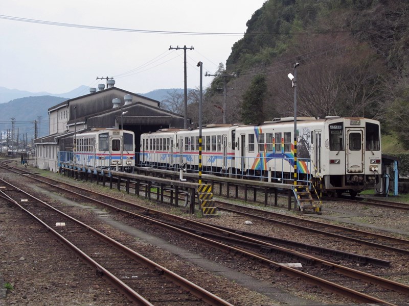 ホームから見たくま川鉄道の車両基地。