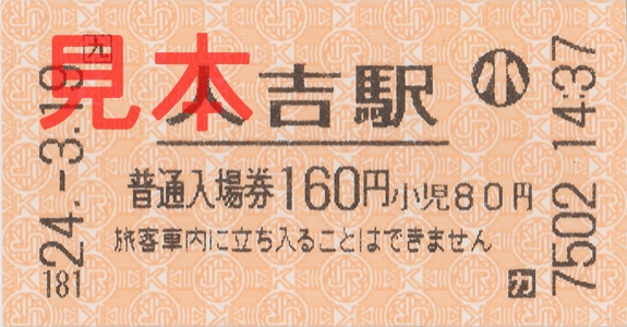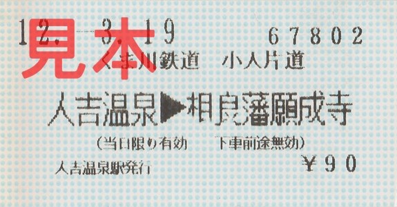 人吉駅入場券(券売機小児券)。