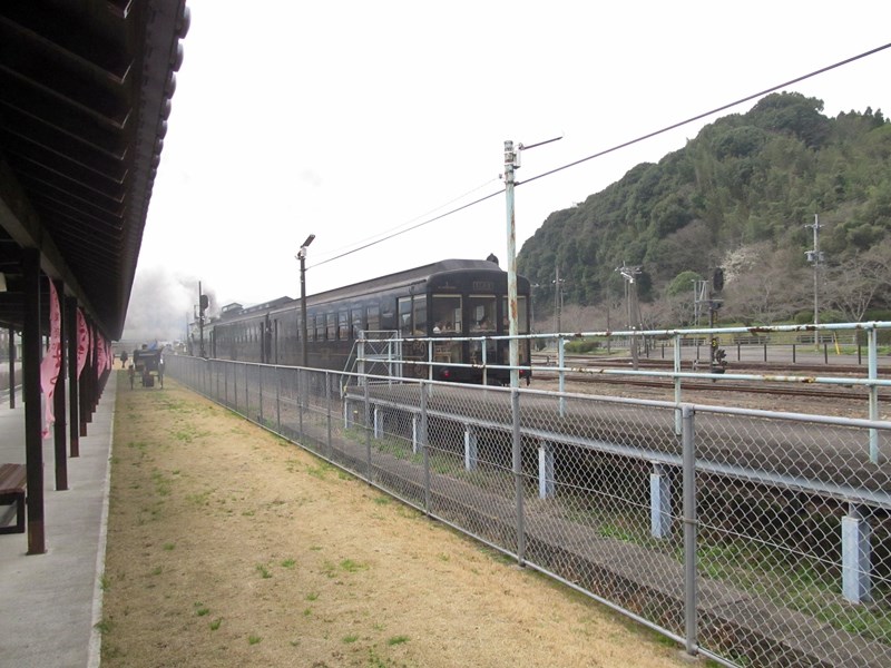 くま川鉄道ホームからSL人吉が見えた。
