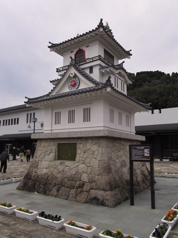 駅前にそびえ立つ城型のからくり時計。