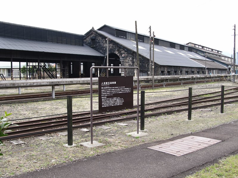 史跡の近くには、石造車庫を間近に見られるスペースが。