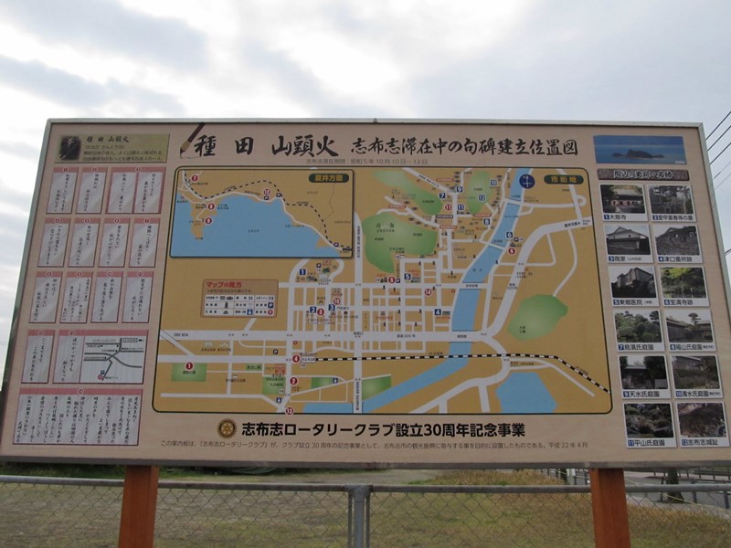 駅前に立つ、種田山頭火の句碑建立位置図。
