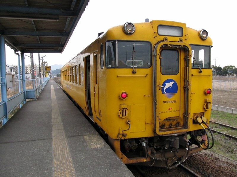 伊比井駅にて、観光特急「海幸山幸」のキハ125-402とすれ違う。