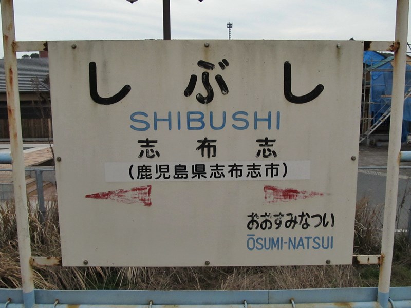 駅名票の左矢印は、今はなき大隅線・志布志線の駅名が書かれていた跡だろうか?