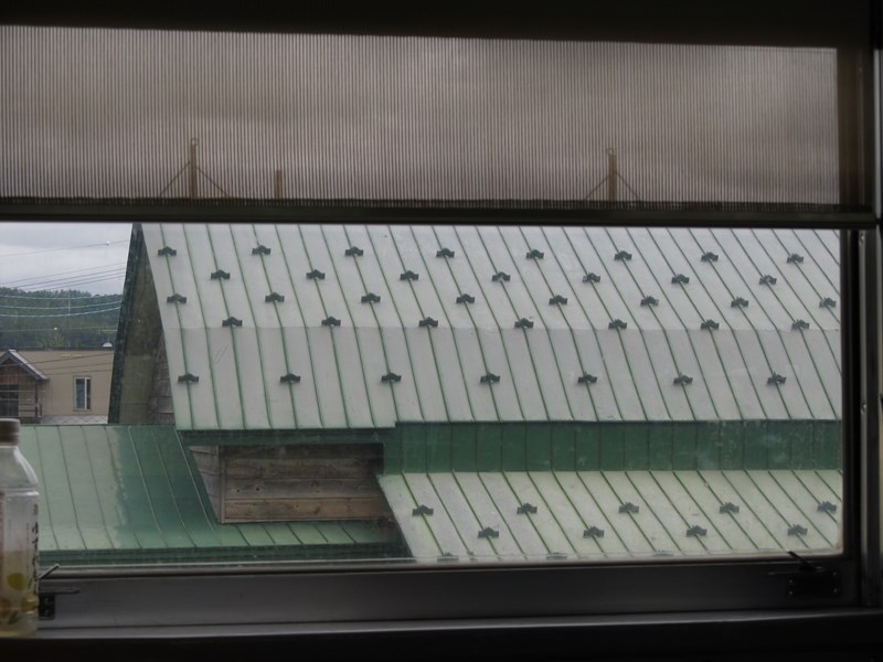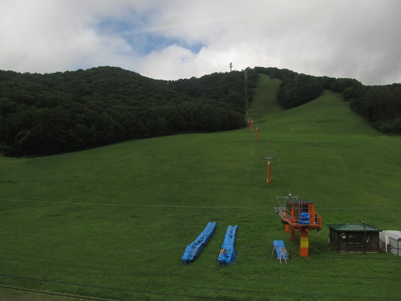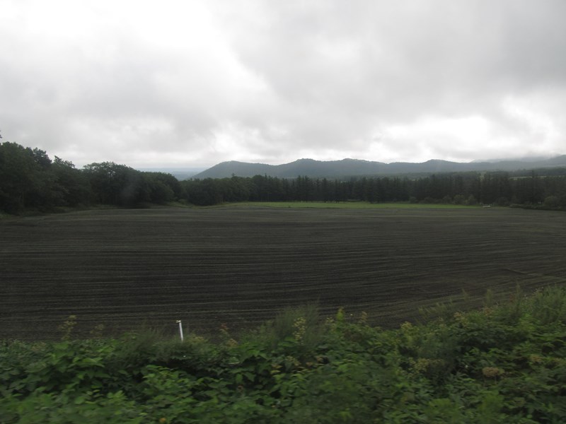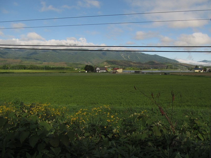 車窓から富良野スキー場方面を望む。少しずつ天気が良くなってきた。