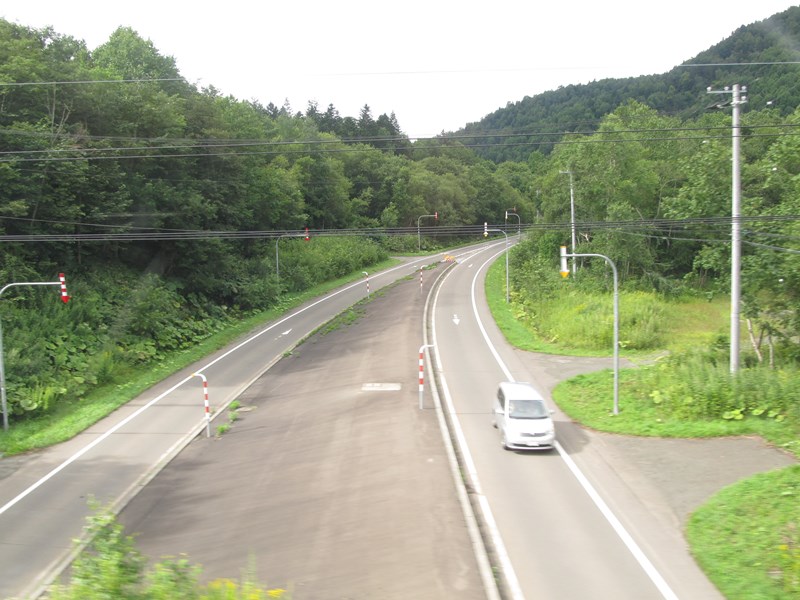 道道1030号石勝高原幾寅線の踏切を渡る。