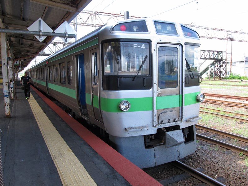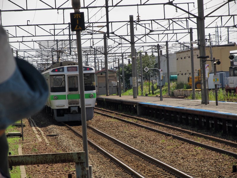 9:08、函館本線 普通 岩見沢行(2324M クモハ721-4(最後尾) F-4、3両編成)に乗り換え。