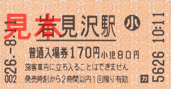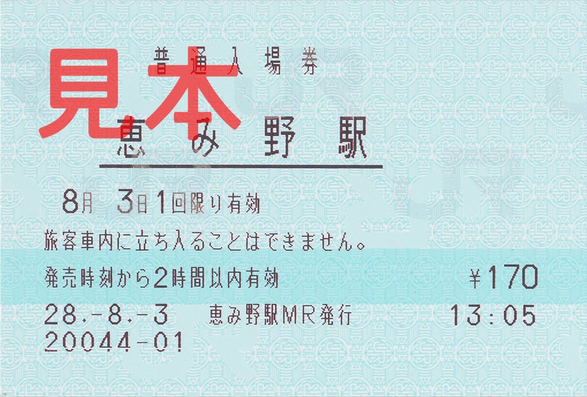 恵み野駅入場券(マルス券)。
