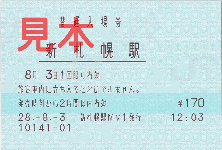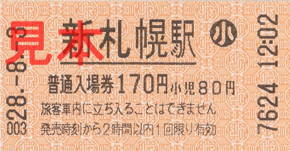 もう1枚、新札幌駅入場券(券売機小児券)。