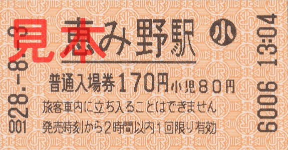 恵み野駅入場券(券売機小児券)。