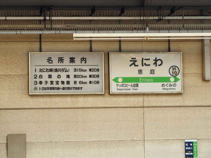 駅名票と名所案内看板。