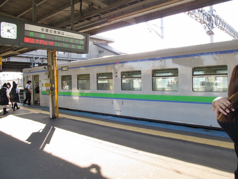 16:17、普通 長万部行(480D キハ150-106(先頭)+キハ40 1762 ワンマン2両)に乗車。