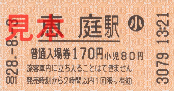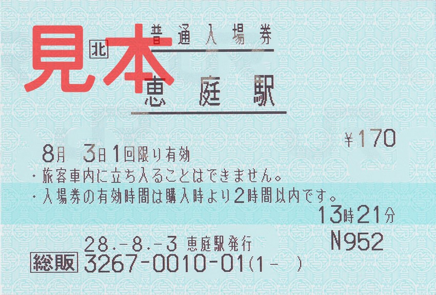 恵庭駅入場券(券売機券・小児券)