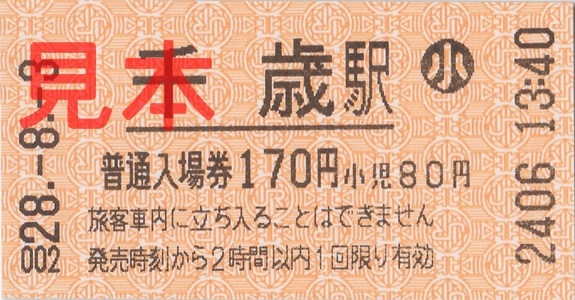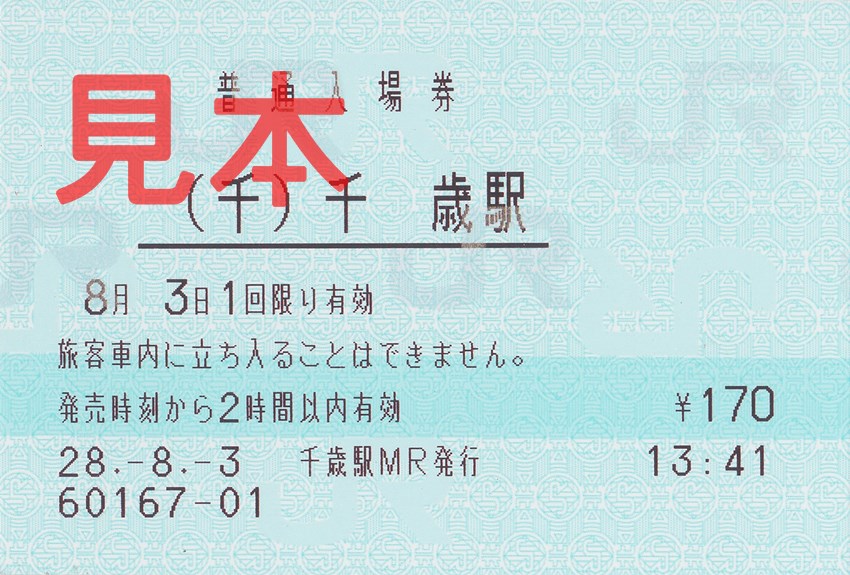 千歳駅入場券(券売機券・小児券)。