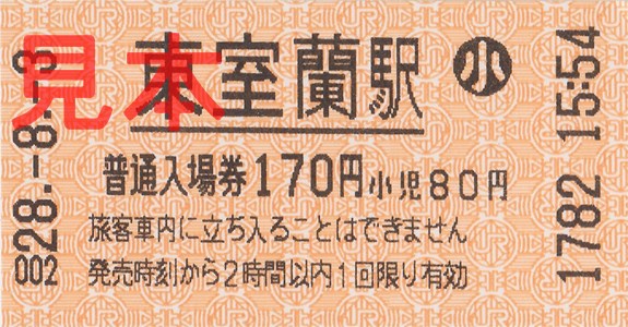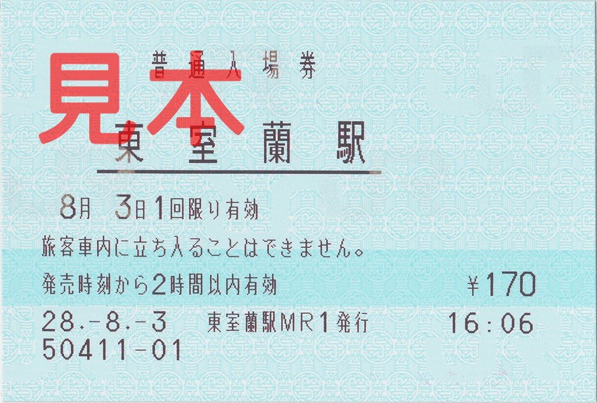 東室蘭駅入場券(マルス券)。