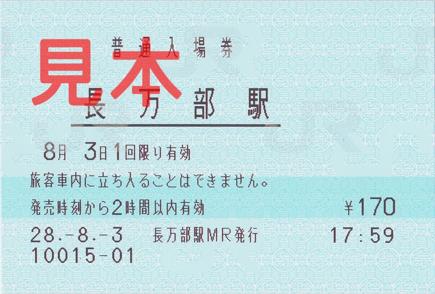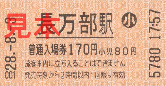 長万部駅入場券(券売機券・小児券)。