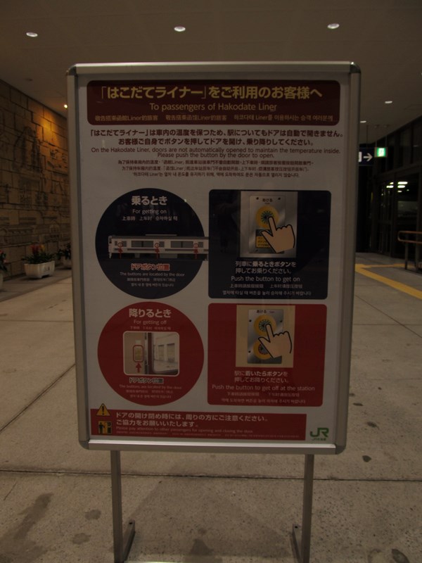 函館支社管内初の半自動ドアを装備しているとあってか、駅構内にはこのような案内掲示がなされていた。