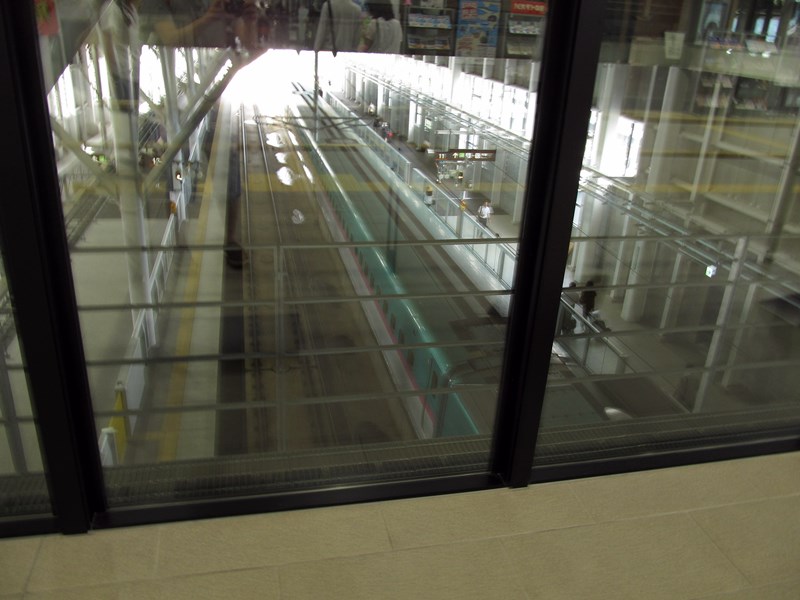 自由通路と出改札スペースはガラス壁と自動ドアで仕切られている。