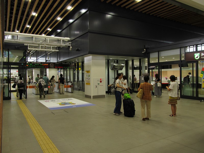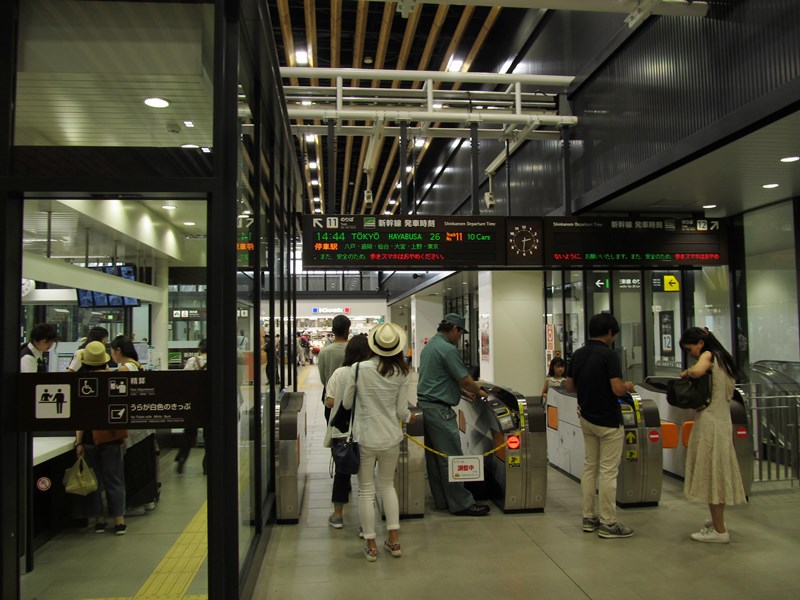 改札口を入って振り返ると、左手に新幹線改札口、右手に新在乗換改札口。
