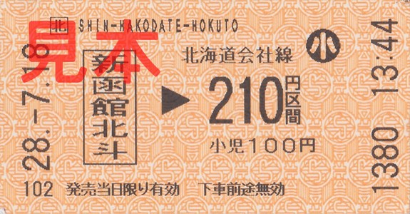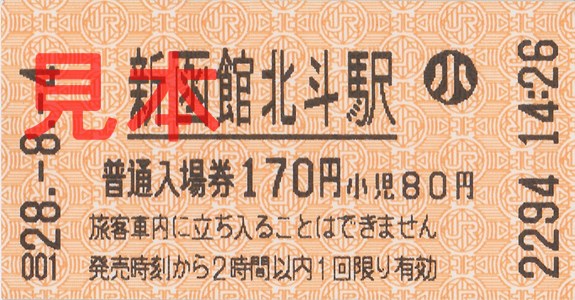 そして、指定席券売機で購入した新函館北斗駅入場券。