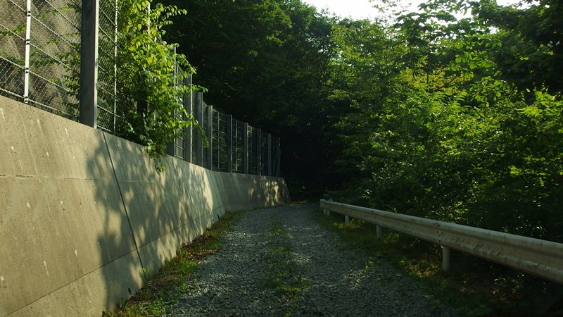 前日に道南いさりび鉄道の車内から見掛けたが、太平洋セメントのベルトコンベアがこの前方を通っている。それを跨ぐための勾配だ。