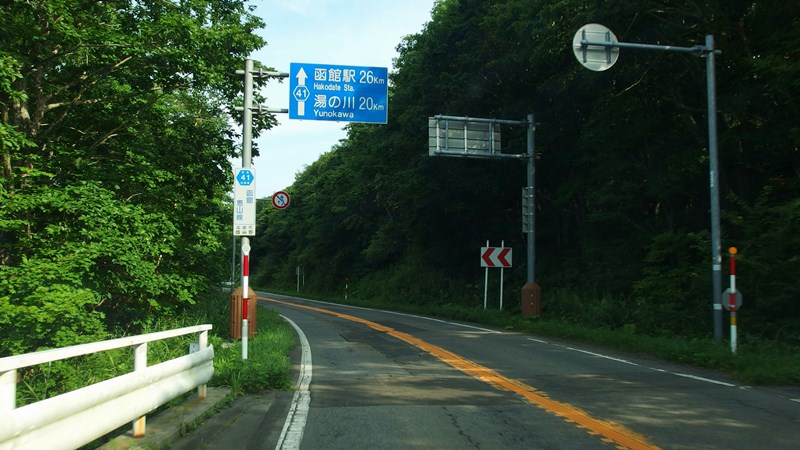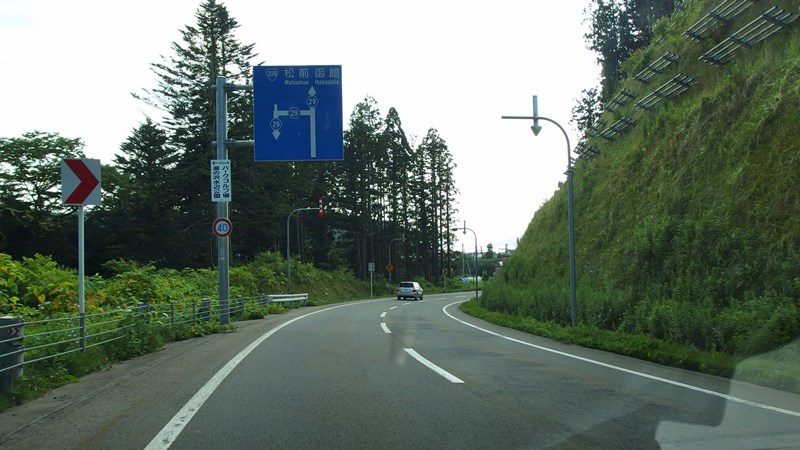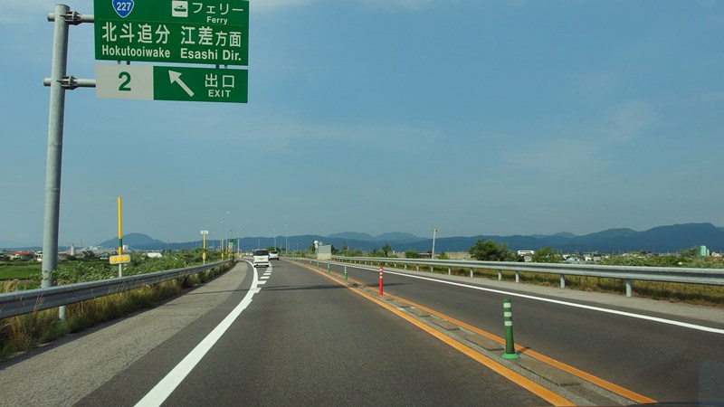 そして今走っている道路が「函館江差道」であるにもかかわらず、一般道の国道227号経由で江差へ向かうことが推奨されているかのような案内。実際、木古内~上ノ国間の道道はあまり線形が良いとはいえず、国道経由の方が便利なのだろう。
