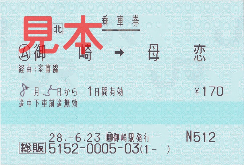 御崎駅→母恋駅乗車券(前出し総販券)。