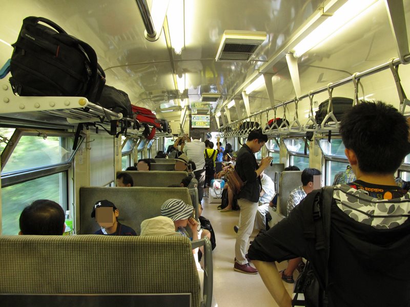 車内は席が埋まり、立ち客がちらほら見られた。