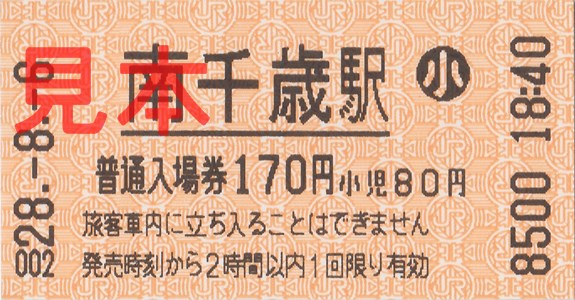 南千歳駅入場券(マルス券)。