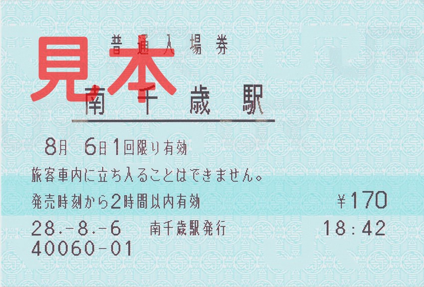 南千歳駅入場券(券売機券)。