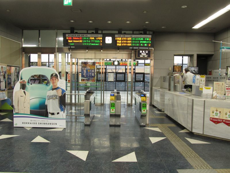 南千歳駅の改札口。自動改札機2通路と有人改札1通路の構成。